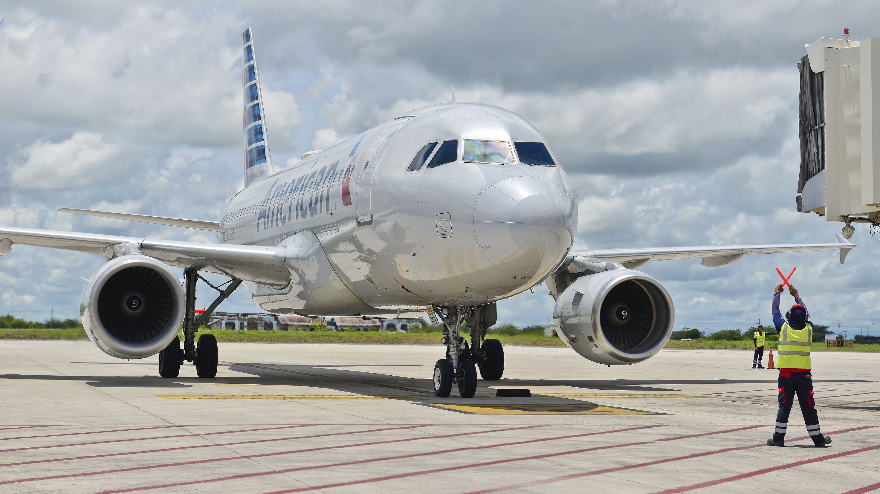 American Airlines flight landing at Guanacaste Airport, Costa Rica.jpg